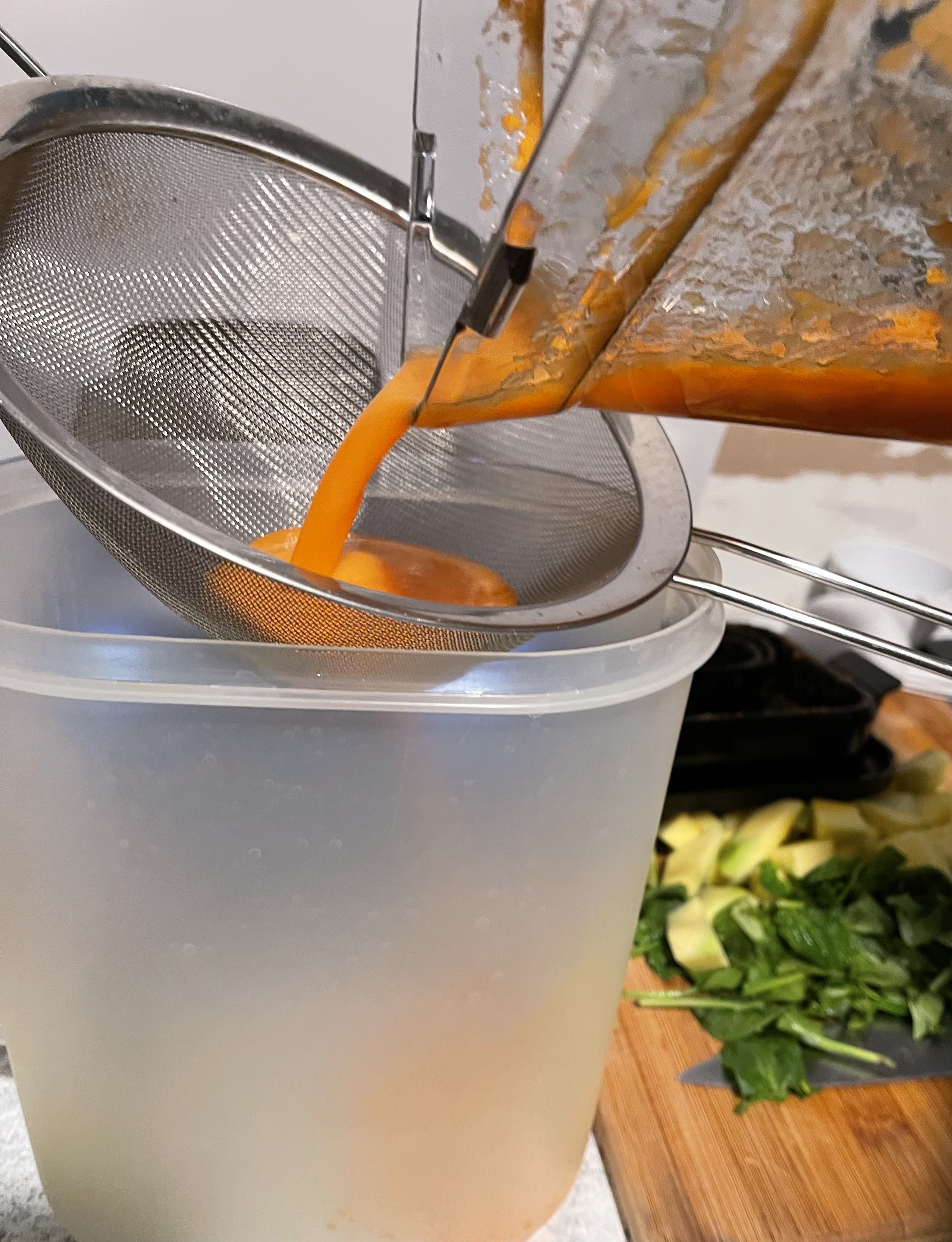 Ahora con un colador y una jarra procedemos a colar la pulpa de la zanahoria