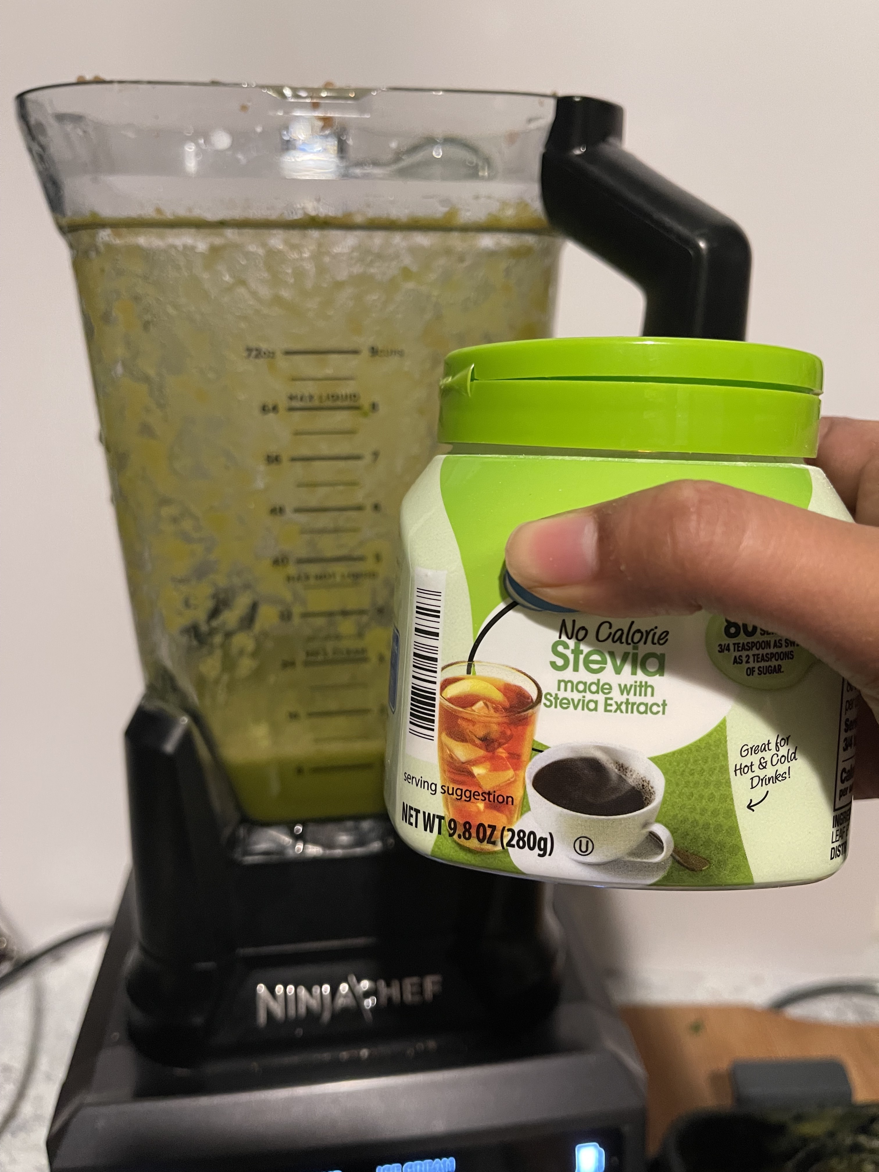 Por ultimo anade el endulzante de tu prefencia y cuantos quieras pero recuerda que menos azúcar es mejor.