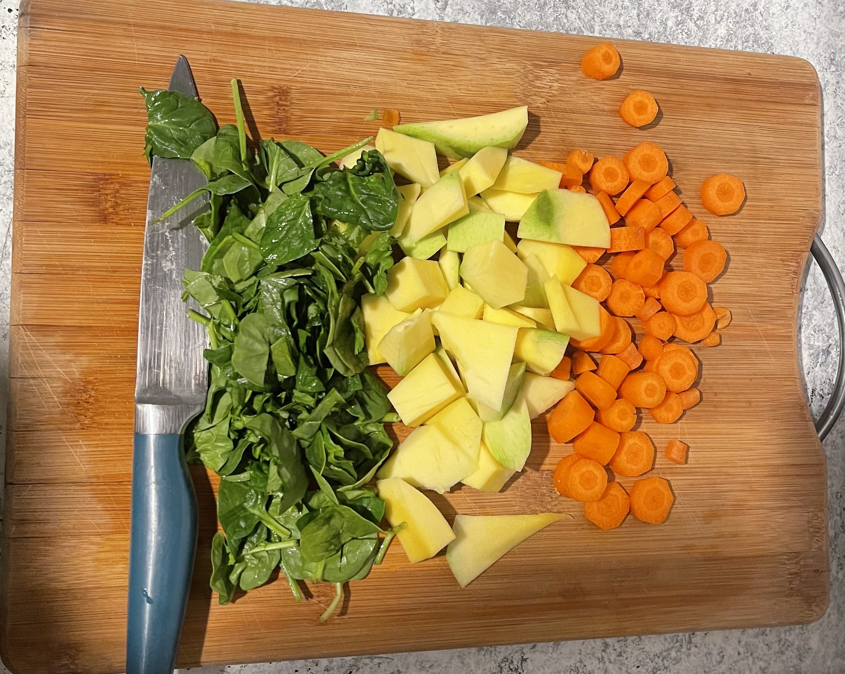 Iniciamos picando las frutas y vegetales