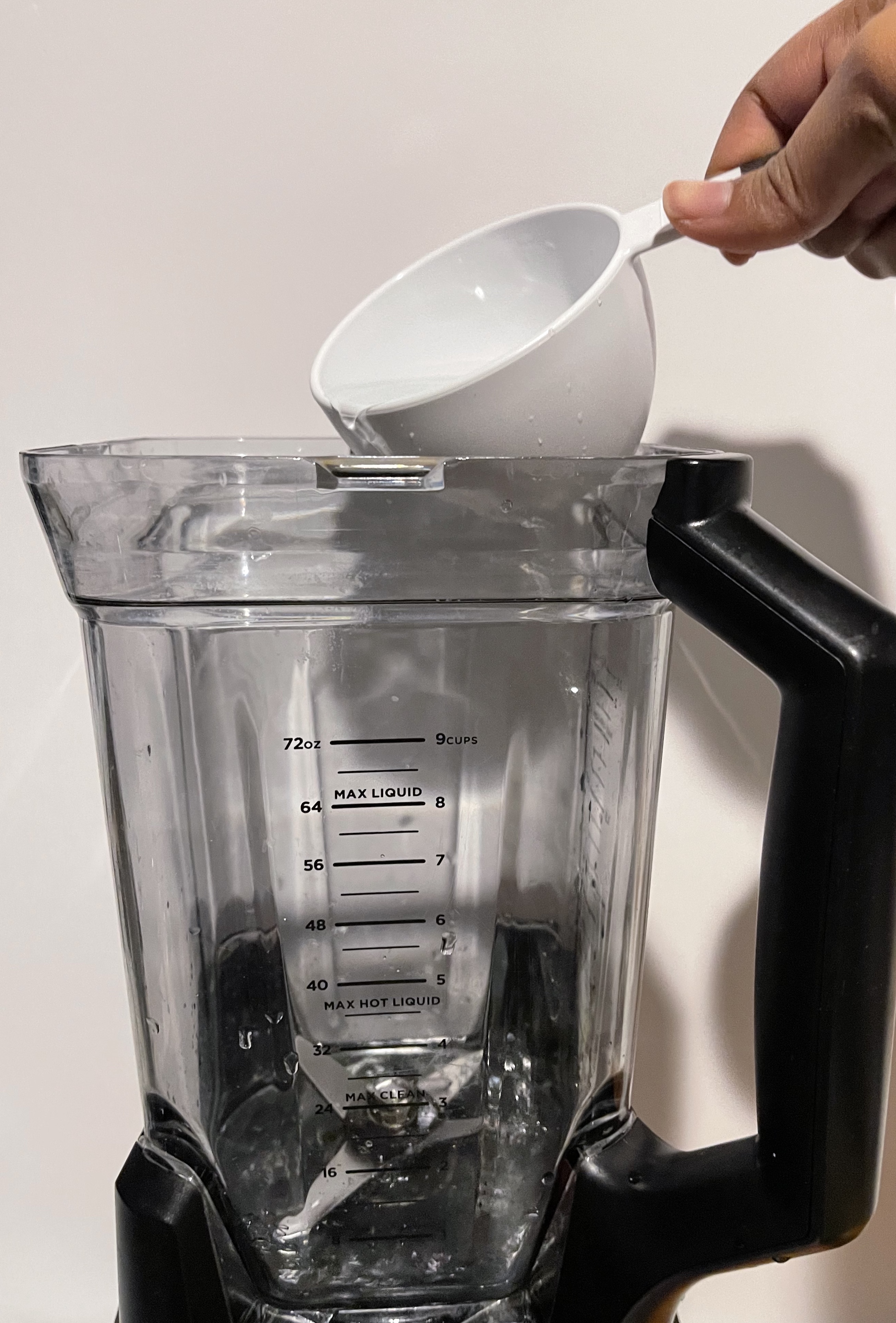 Luego de que están picados, procedemos encender la licuadora y agregarle el agua.