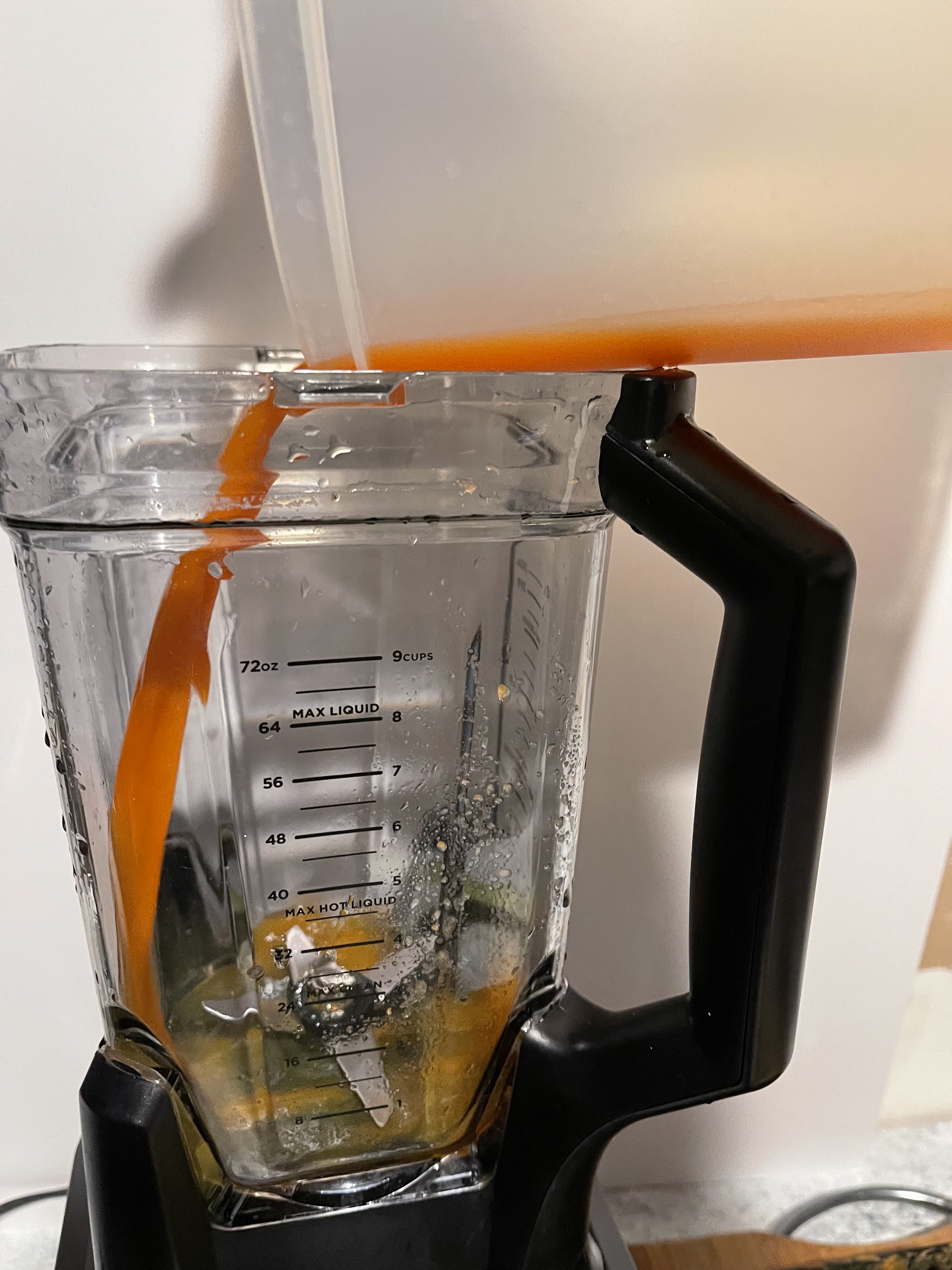 Lo siguiente será añadir las zanahorias solamente y licuar por 1 minuto.